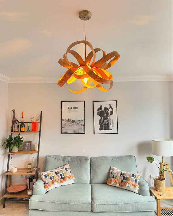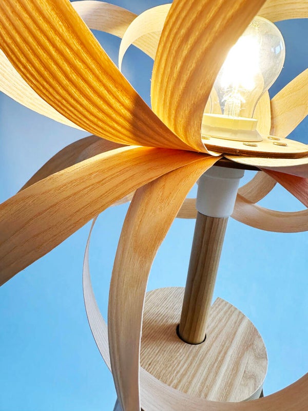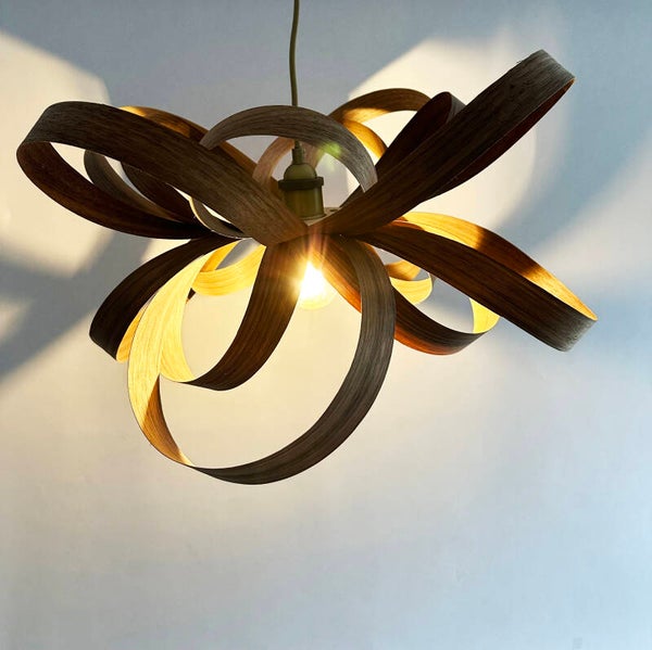 Scandinavian design inspired by the outdoors. The Defiant, sustainable ash, oak, beech, walnut or smoked chestnut is hand-shaped to create an open light that casts 360, with a bright, bold contrast of light and shadows. Create an impact, embrace the simplicity and make a statement.